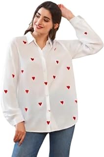 Women's Regular Fit Red Heart Printed Button Down Collar Casual White Shirt.