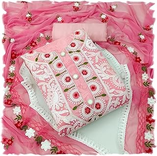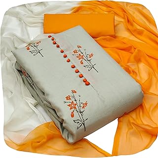 Women's Heavy Chanderi Cotton Embroidery Work Unstitched Salwar Suit Dress Material With Nazmin Work Dupatta (Free Size)