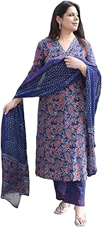 Women's Pure Cotton Floral Printed Kurta with Palazzo & Dupatta