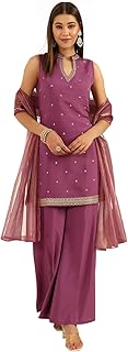 Women's Lavender Viscose Chanderi Straight Kurta with Palazzo and Dupatta