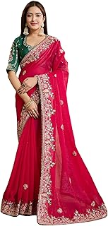 Women's Fendy Chiffon Silk Embroidery Work Saree With Blouse Piece