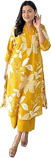 Women's Floral Printed Cotton Blend 3/4th Sleeve Knee Length V-Neck Kurta and Palazzo Set for Women