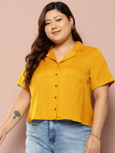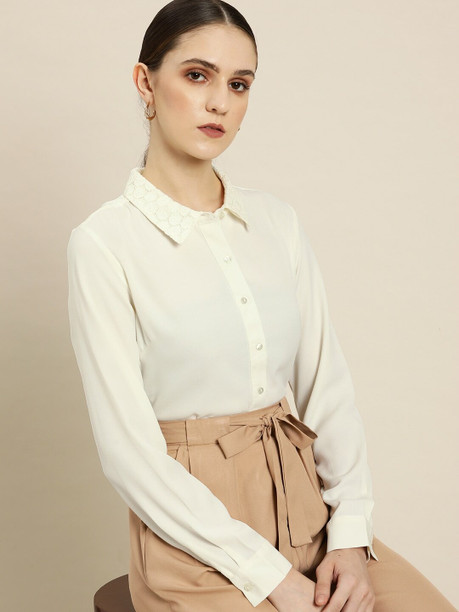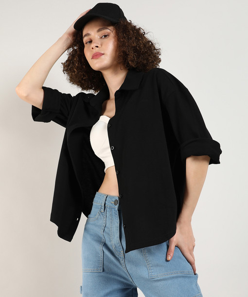 Women Regular Fit Solid Spread Collar Casual Shirt