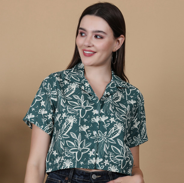 Women Regular Fit Floral Print Lapel Collar Casual Shir...