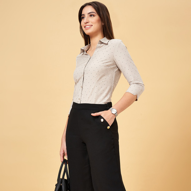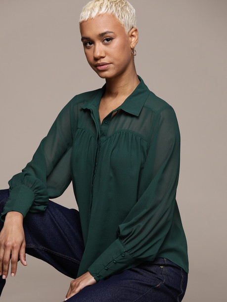 Women Regular Fit Solid Button Down Collar Party Shirt