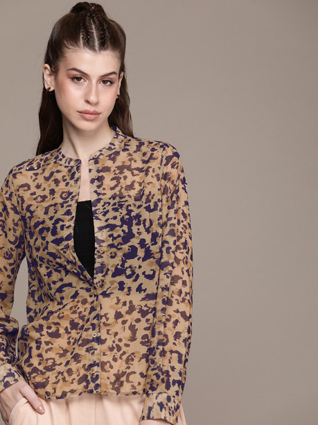 Women Regular Fit Printed Mandarin Collar Casual Shirt