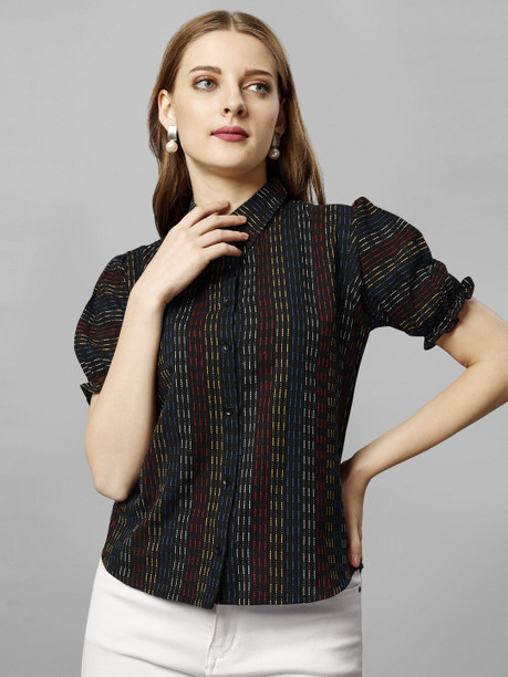 Women Regular Fit Striped Spread Collar Casual Shirt