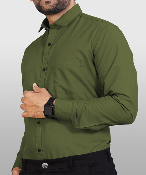 Men Regular Fit Solid Button Down Collar Formal Shirt