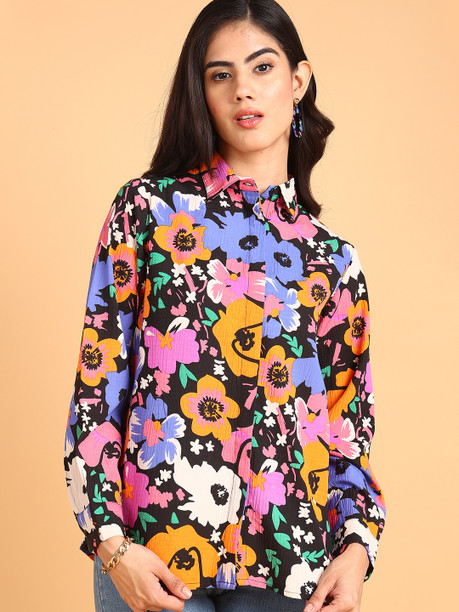 Women Relaxed Fit Fit Floral Print Spread Collar Casual...