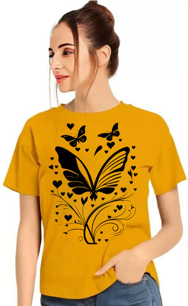 Women Printed Round Neck Pure Cotton Black T-Shirt