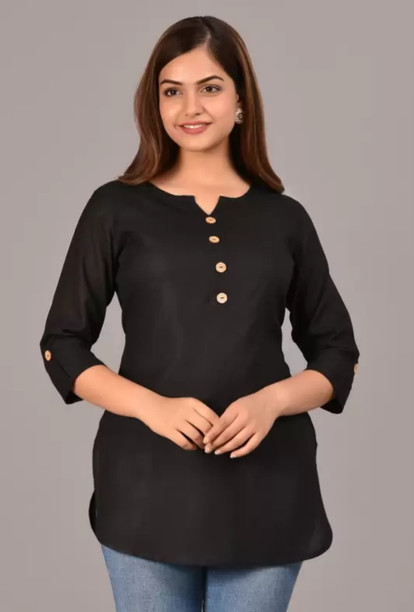 Women Solid V Neck Cotton Blend Black T-Shirt