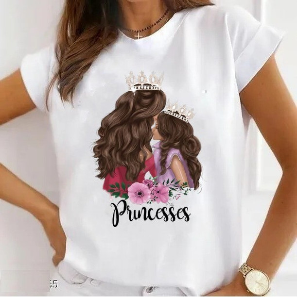 Pack of 2 Women Printed Round Neck Polycotton White T-S...