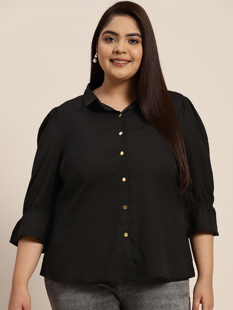 Women Regular Fit Solid Spread Collar Casual Shirt