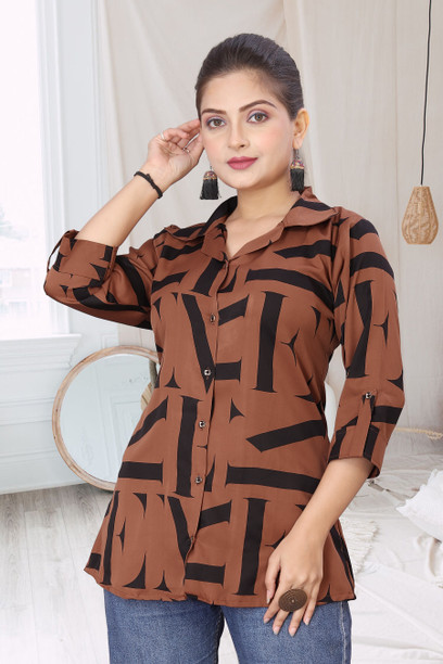 Women Boxy Fit Printed Lapel Collar Casual Shirt