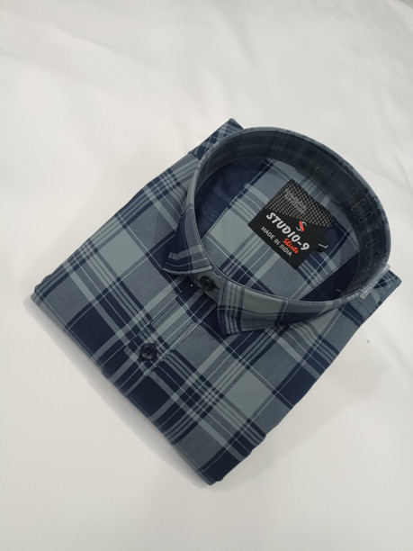 Men Slim Fit Checkered Spread Collar Casual Shirt