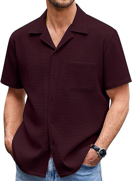 Men Regular Fit Solid Curved Collar Casual Shirt