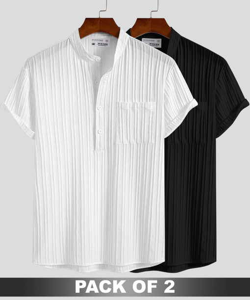 Men Regular Fit Striped Mandarin Collar Casual Shirt