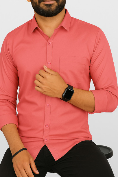 Men Regular Fit Solid Button Down Collar Casual Shirt