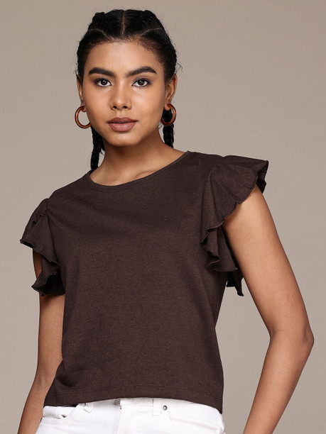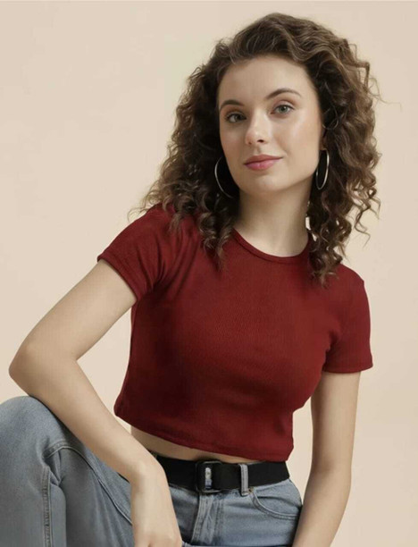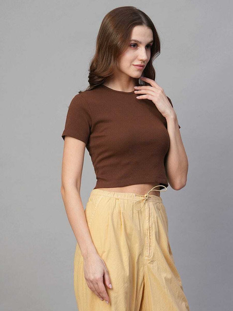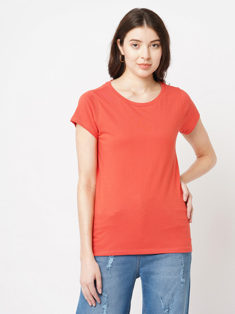 Women Solid Round Neck Pure Cotton Orange T-Shirt