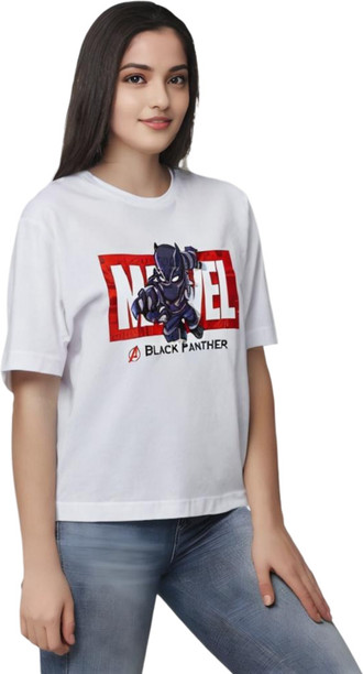Women Printed Round Neck Cotton Blend White T-Shirt