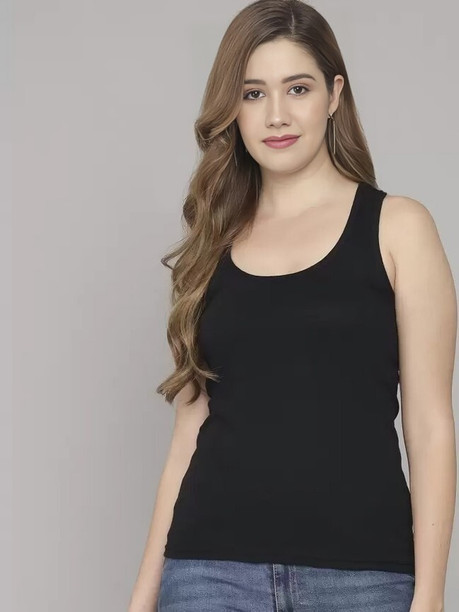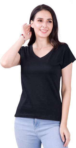 Women Solid V Neck Cotton Blend Black T-Shirt
