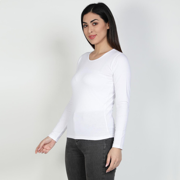 Women Solid Round Neck Cotton Blend White T-Shirt