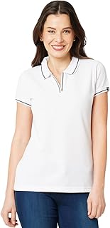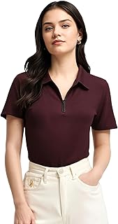 Ribbed |Regular Fit | Half Sleeves 100% Cotton Polo Neck Self Design with Zip T-Shirt for Women-M919