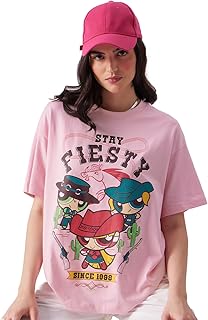 Powerpuff Girls: Stay Fiesty Womens Oversized Fit Graphic Printed Half Sleeve Cotton Pink Women Oversized T-Shirts