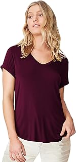 Women's V- Neck Long Sleeve Slim Fit Casual Tee Top, 23" inches (Trisha-01-P)