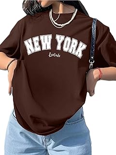 Half Sleeve Cottonblend Oversized Tshirt for Women, Round Neck Longline Printed Drop Shoulder Baggie T-Shirt (Color Brown)