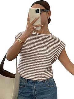 Women's Striped Round Neck – Cap Sleeve Summer Casual Top Tee | Summer Tops for Women | Tank Top Loose Fit