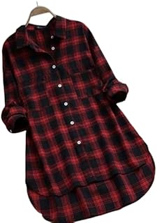 Pure Cotton Maroon Plaid Printed Oversized Long Women's Shirt