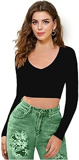 Dream Beauty Fashion Women's Full Sleeve V-Neck Crop Top (T-Baati Black-S)