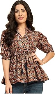 Multicolor Floral Peplum Top for Women – Cotton Blend V-Neck, Casual, Party & Office Wear