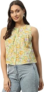 Women's Floral Cotton Regular Fit Top With Lace Detail