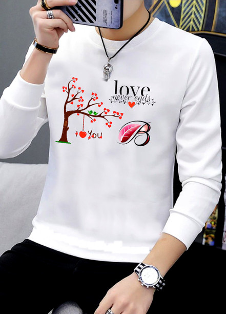 Men Printed, Typography Round Neck Polyester White T-Sh...