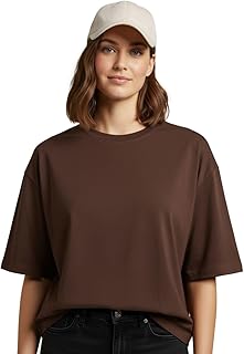 Women's cotton Oversized Fit Oversized Half Sleeve Tshirt, Round Neck Longline Drop Shoulder Solid T-Shirt